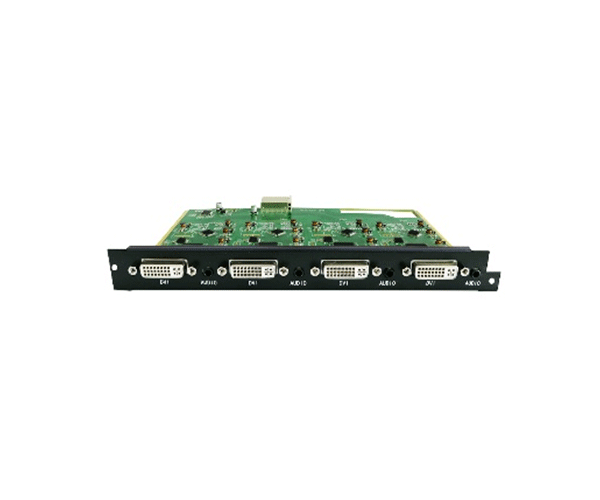 输出板卡参数: 1.板卡具有4路DVI-I信号接口,支持DVI-D信号,通过转换头(须另配)兼容HDMI.VGA.YPbPr.CVBS等信号。 2.板卡具有4路3.5mm模拟立体声音频输出接口。 3.板卡支持1920×1080P60分辨率。带EDID功能。 4.板卡采取3D降噪.点对点硬件无压缩实时转换设计,实现无缝切换.支持拼接功能。 接口说明: 输出接口:4路DVI-I信号接口 音频输出接口:4路3.5mm模拟音频接口